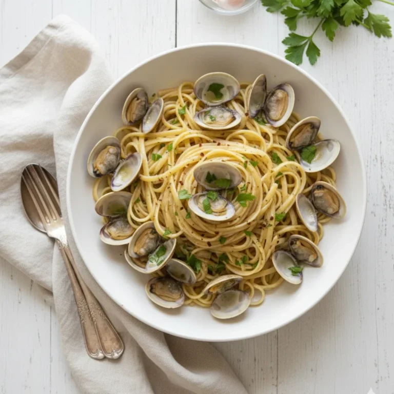 A classic Italian recipe, this pasta dish with clams in a white wine sauce may look fancy, but is easy to make on a weeknight!