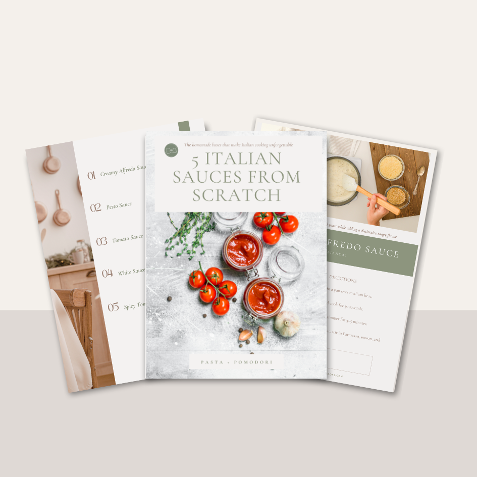 Inside this beautifully simple guide, you’ll learn how to make 5 foundational Italian sauces that transform everyday ingredients into unforgettable meals.