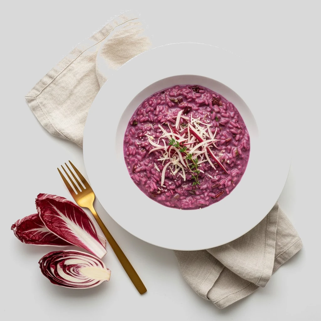 - When the rice is creamy and al dente, stir in the chopped radicchio.